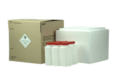 ‘620/650 Insulated Specimen Transport Pack’ with fibreboard outer box, EPS insulating box, 6 x re-sealable plastic bags (Primary Receptacle), 6 x 1 L HDPE rectangular jars with 58 mm screw closure and annular gasket (Secondary Package) and 24 x absorbent pads for transport with chilling mediums or at ambient temperature.